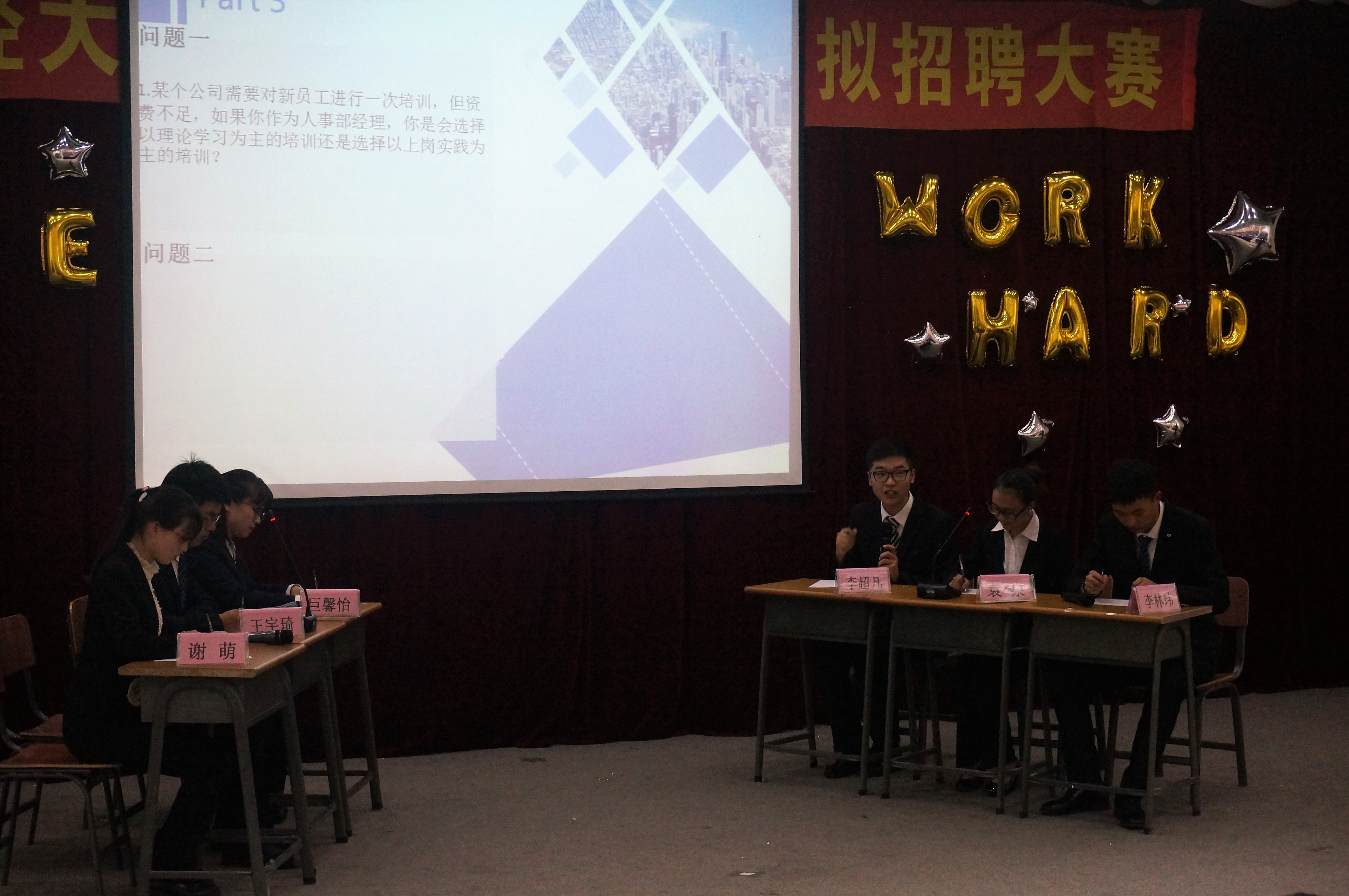随后,决赛正式开始。本次决赛共分为三个环节,分别是自我展示,职场问答,实力作证。在自我展示环节中,选手们以他们自信的身影,沉稳的表达,精彩的简历征服了在场的评委。紧接着在模拟真实应聘场景的职场问答中,参赛选手的敏捷反应,条理清晰的回答,使他们的专业能力得到了淋漓尽致的展现。在最后的无领导小组讨论中,选手们高超的组织协调能力、口头表达能力、辩论的说服能力等综合素质,得到了充分的展示,赢得在场评委夸赞连连。在激烈的角逐中,来自公共管理公司的李超凡同学夺得此次比赛的冠军。