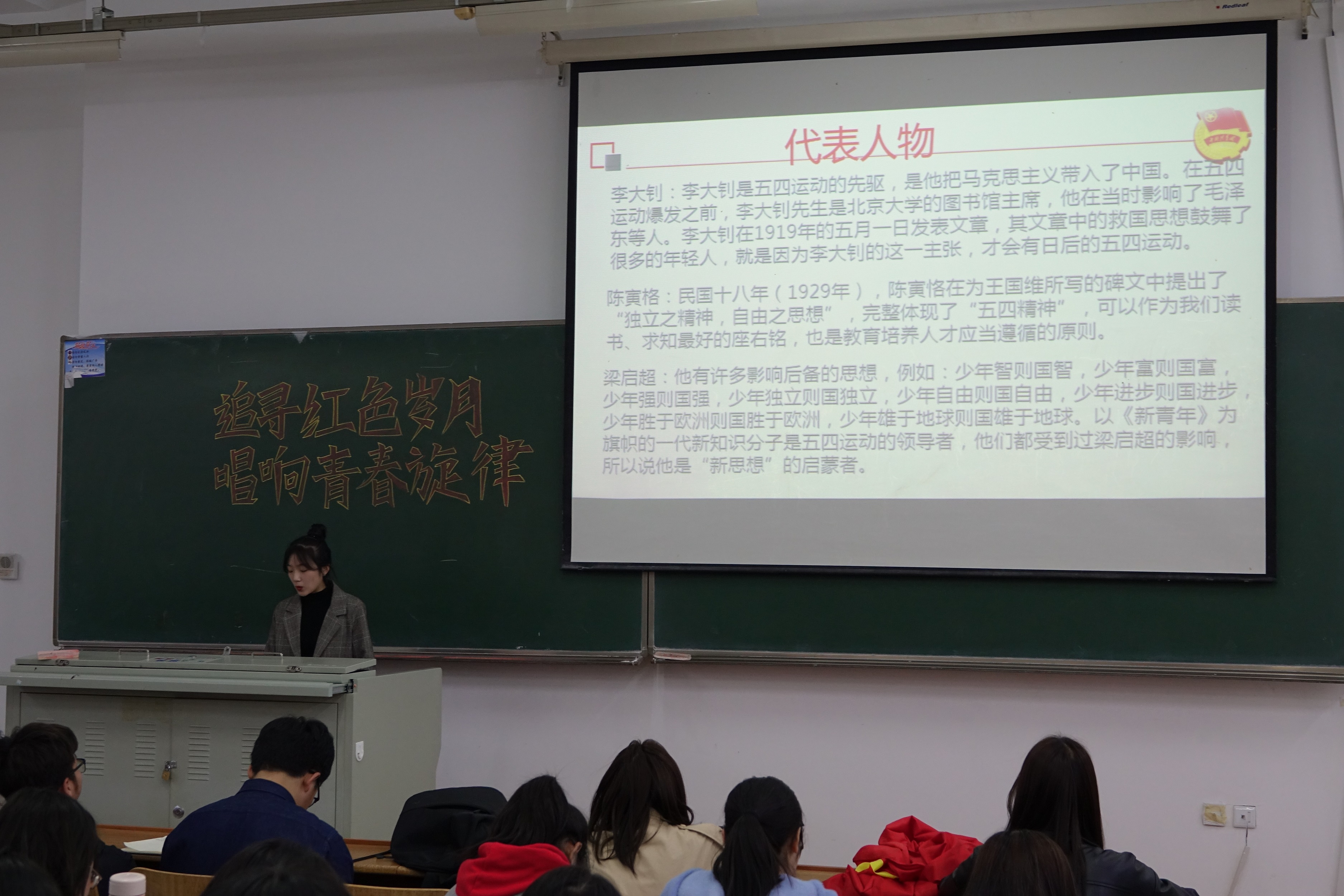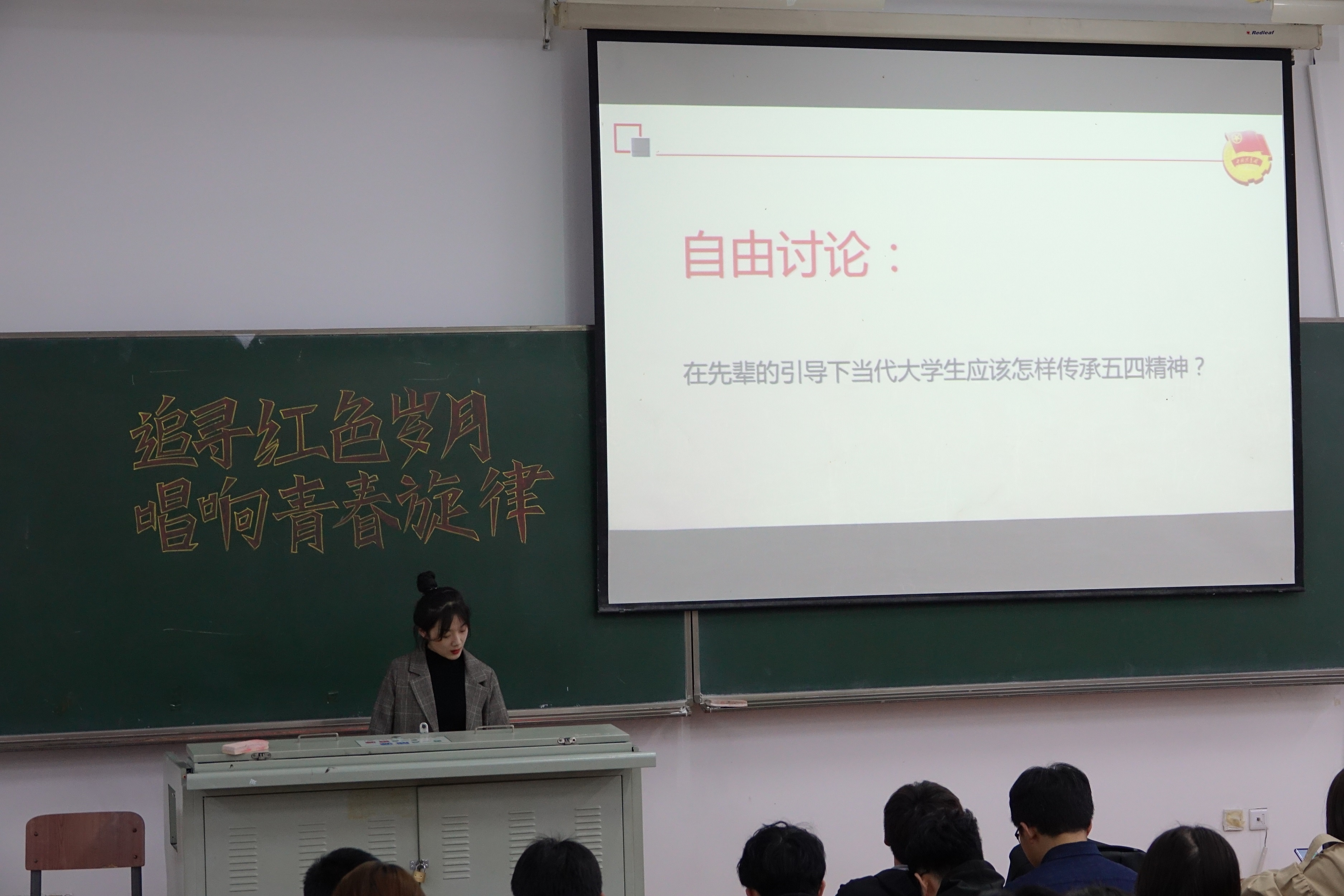 为了纪念五四运动100周年,感怀先辈为新中国做出的伟大贡献,4月16日下午六点公司分团委组织部带领18级同学在第一教学楼1408开展了“追寻红色岁月,唱响青春旋律”主题团会。
