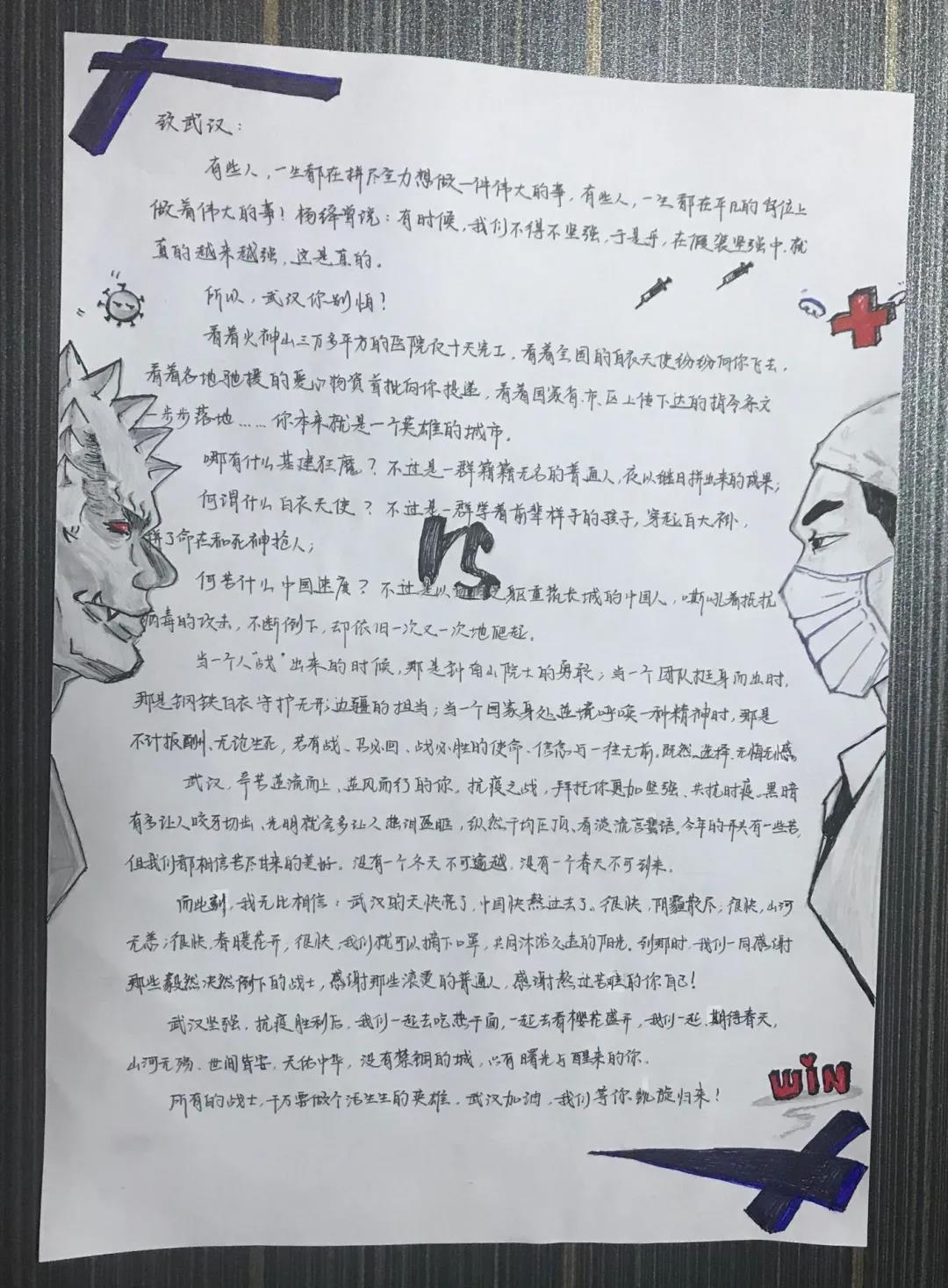 为贯彻落实习近平总书记对新型冠状病毒感染的肺炎疫情重要指示和中央政治局常委会会议精神,落实李克强总理批示要求,结合《教育部关于切实做好新型冠状病毒感染的肺炎疫情防控工作应急预案的通知》以及《304永利集团新型冠状病毒肺炎疫情防控工作方案》等精神,为有效预防和控制新型冠状病毒感染的肺炎疫情,做到早发现、早报告、早隔离、早治疗,有效控制疫情蔓延,减轻疫情危害,保障师生健康和生命安全,特成立304永利集团新型冠状病毒肺炎防控工作领导小组,在公司党总支的领导下,304永利集团员工党支部组织同学通过手抄报为武汉加油!挑出以下优秀作品向大家展示: