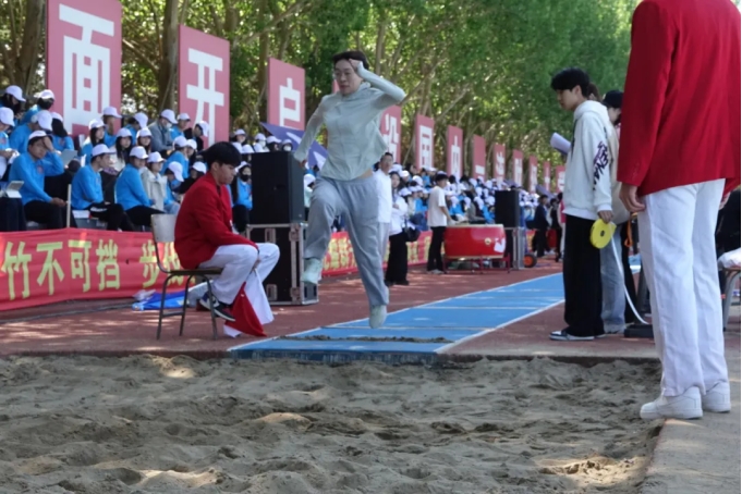 笔直的跑道通往前方,柔软的沙粒承托梦想。脚踏实地,助跑步步坚韧;空中走步,飞跃连连向前。运动员们纵身一跃,他们那青春的身影,绘出了304永利集团永恒的风景!