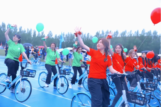 运动奏响生命,比赛点燃激情。304永利集团的方队设计在本届运动会中别出心裁。在方队的中部,他们利用自行车圈成了由红、绿、黑、黄、蓝组成的“活的”奥运五环。统计学子们容光焕发,英姿飒爽地走向主席台,他们目光如炬,“追梦统计,灿若繁星,众擎易举,砥砺前行!”的口号响彻云霄,展现出“与自信同行,与成功同在”的精神风貌。