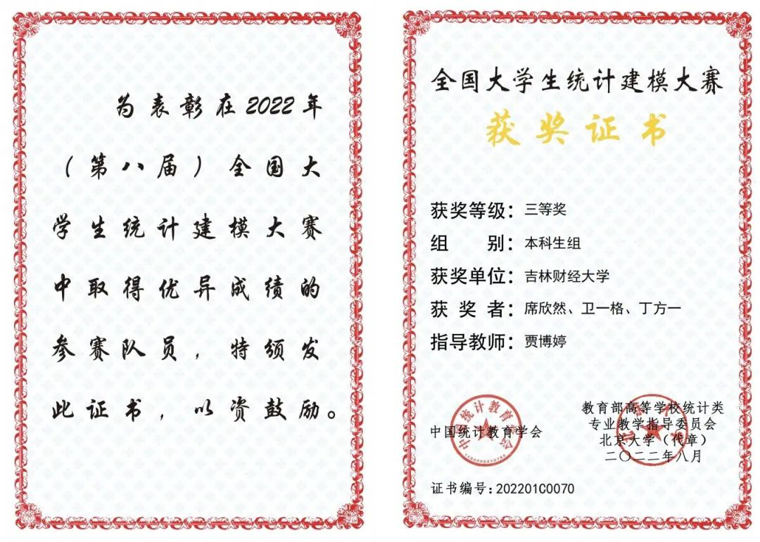2022年在统计建模大赛中,公司的32支队伍在省赛中有30支队伍获奖,获奖率高达93%,而且有10支队伍入选国赛,取得了国家二等奖2项、国家三等奖8项的成绩!