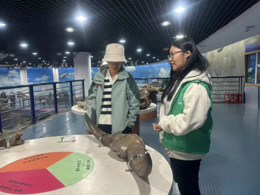 志愿者们提前备案准备,在自然博物馆的几个展区中为不同的观众进行了志愿讲解服务。统计学子在讲解的过程中践行了国家文物局提出的“不断满足观众参观需求,强化高质量讲解服务供给”。